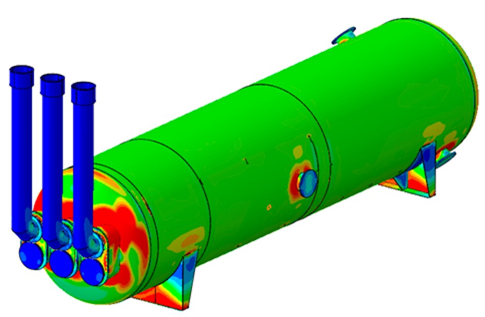 Abaxfem realiza diseños de recipientes a presión de acuerdo con el Código de Calderas y Recipientes a Presión ASME, Sección VIII, División 2, utilizando herramientas avanzadas de Análisis de Elementos Finitos (FEA), evaluamos la distribución del esfuerzo, el colapso plástico, la fatiga y el pandeo para optimizar la geometría, la selección del material y el espesor cumpliendo con los requisitos del código.